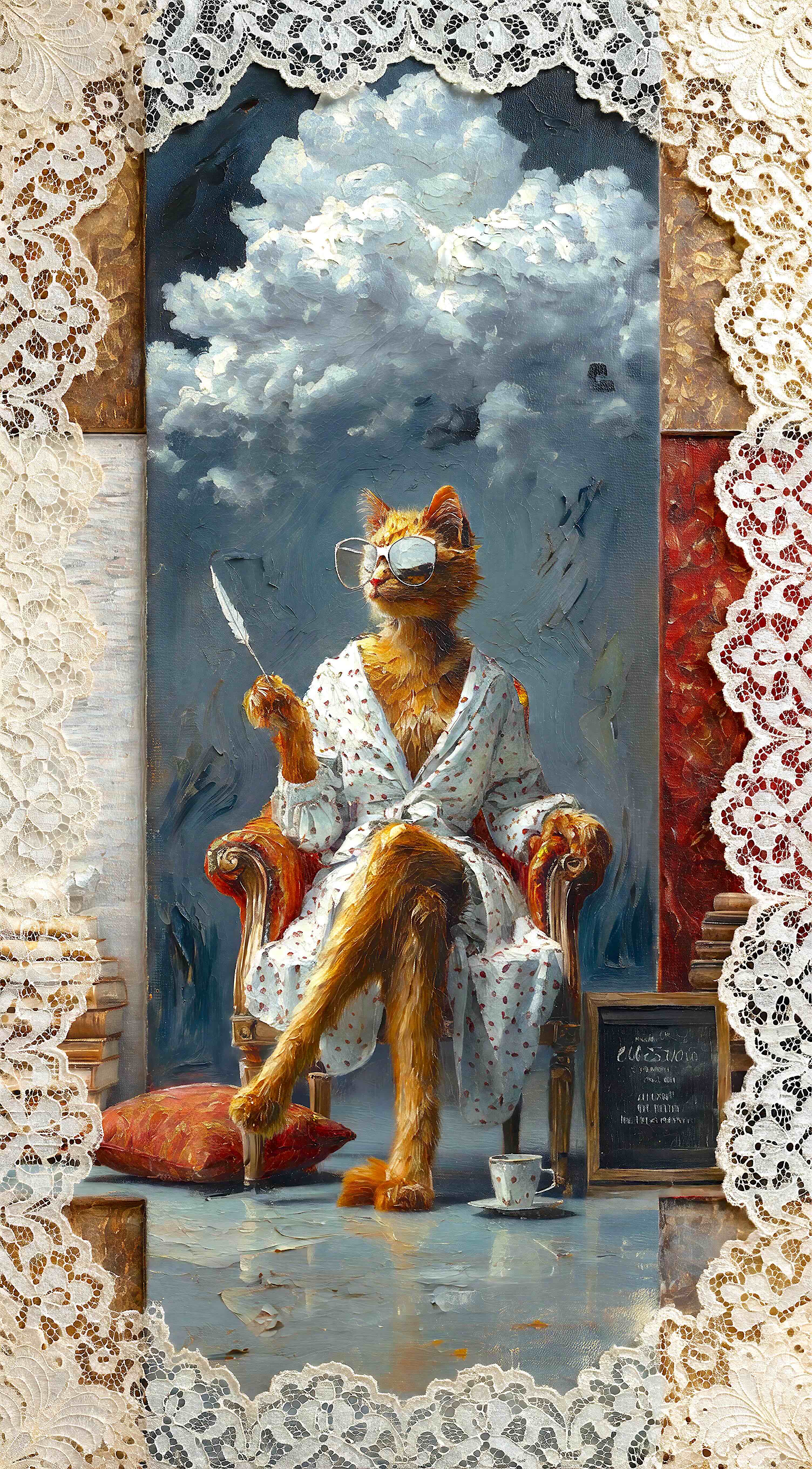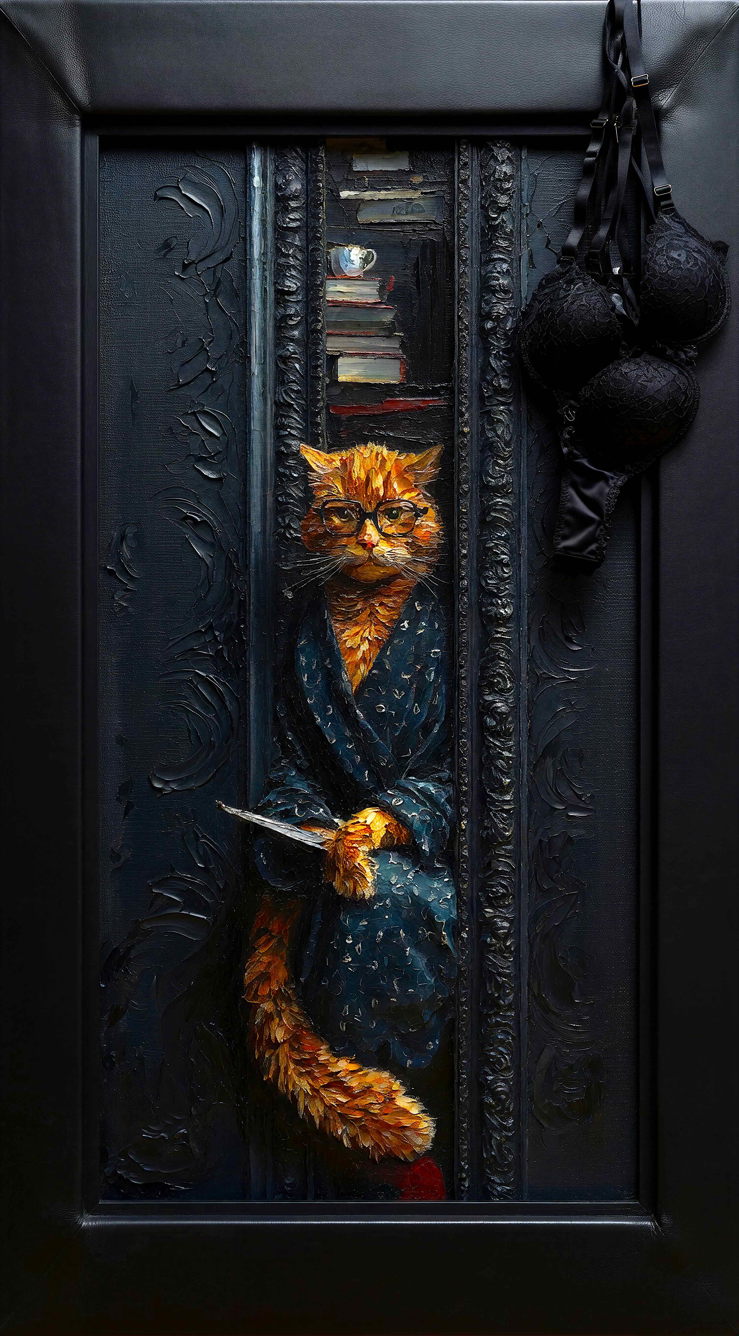 Эти коты — не декор. Они — жильцы. Они сидят в вашем кресле, носят ваши очки, читают ваши книги, пьют ваш кофе. И смотрят так, будто знают то, что вы не сказали - даже себе.